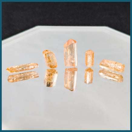 Set of 5 Golden Imperial Topaz crystals in translucent golden yellow.