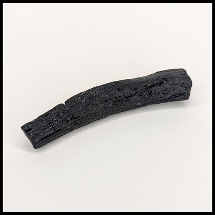 Indochinites are tektites from the massive Australasian strewn field, which includes all varieties of tektites found in China, the Indochinese Peninsula, Philippines, Indonesia, Australia, and any Micronesian islands. These tektites are mostly black or very dark green, and can be in a variety of typical splash-form tektites, like teardrops, spheres, ellipsoids, dumbbells, and even buttons. This piece is solid black with classic texture and pitting in an elongated shape with a smooth end.