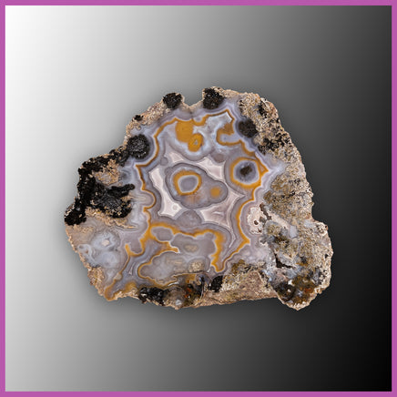 Agua Nueva Agate is famous for its striking nodules of colorful banded agate and tube formations. The agate can form in veins and nodules, and shows both banded and moss agate. It comes from Chihuahua, Mexico, roughly 20 miles northeast of the Laguna deposits.