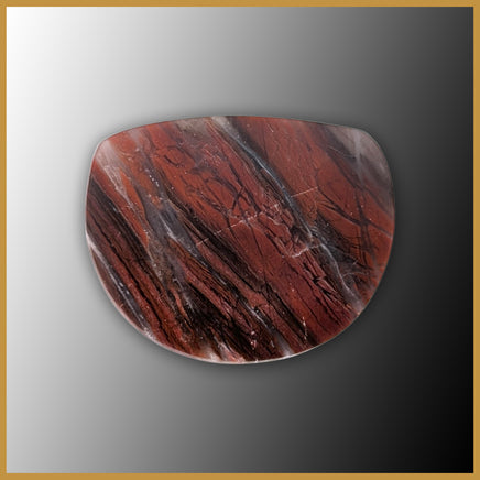 Kowallabe Quartzite Cabochon with a matte finish. It features dense red streaks in a foggy translucent base. The line across the center is not a scratch but within the stone itself.