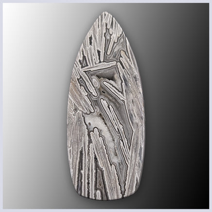 Also called Vestido de Blanco Agate, Lattice Lace Agate comes from Chihuahua, Mexico. It features intricate, overlapping, and intersecting patterns in a monochromatic color palette with frequent druzy. Spots of botryoidal formations which create a more classic 'Crazy Lace' pattern are also possible.