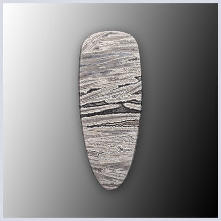 This Lattice Lace Agate Polished cabochon shows white and translucent gray agate with overlapping lines and banding, with a tiny hint of sparkling druzy.