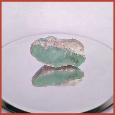 This natural piece of Variscite has been slightly worked to grind the open face smooth. It shows a pretty mint green color with gray and chalky white matrix.
