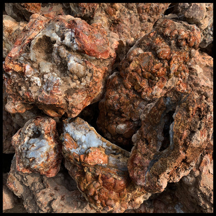 Cold Mountain Thundereggs are similar to Butterfly Jasper but offer a brighter range of colors. Also the thundereggs can contain water banding and features red, mauve, or black “webbing.” While technically a rhyolite due to its thunderegg nature, Cold Mountain Thundereggs are highly silicate and filled brecciation. This material takes an exceptional polish which makes it ideal for both cabochons and specimens. The rough nodules usually have a bumpy exterior, but occasionally can be smooth.