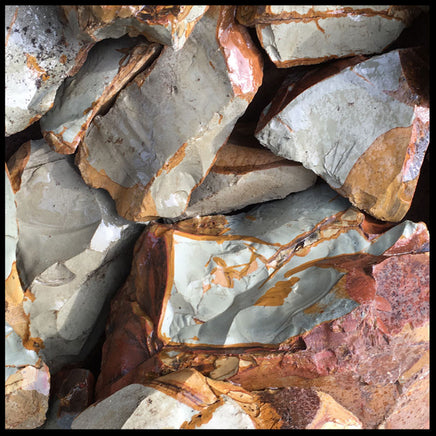 From the Wildhorse Picture Jasper claim, fine grained, consistent jasper, mostly grey/green in color, Available size range 1 lb to 10 lb (0.45 kg to 4.5 kg) pieces.