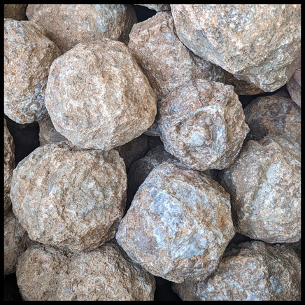 Partially hollow and quite round with sizes ranging from 4" - 8" in diameter. Most nodules approx. 4lbs