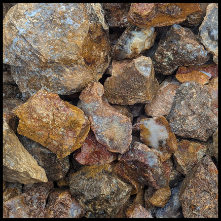 This Grade #2 vein material contains white and gold sagenite sprays in milky, bluish, or golden agate.