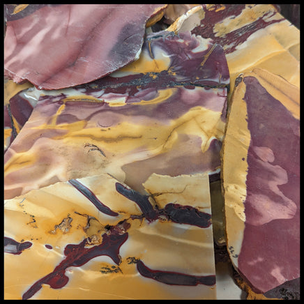Price is for 1 lb lot. Shapes, sizes, and colors will vary between each slab. Primary image shows the slabs wet.