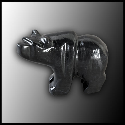 Smooth carving of a bear standing on all fours, made out of Black Onyx.