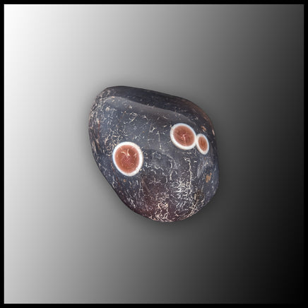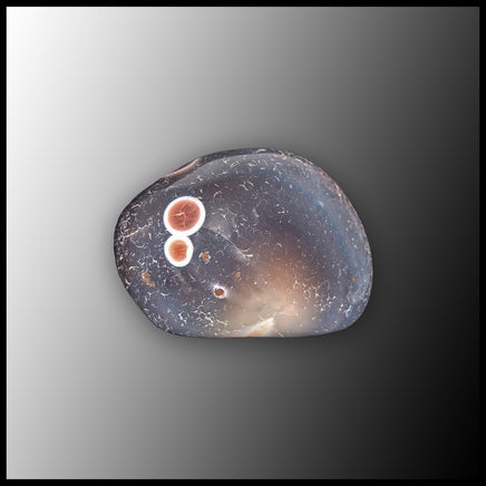 This Botswana Agate nodule has been polished on all sides to reveal four prominent eye formations on the outside of the gray agate.