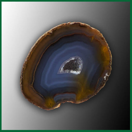 CHI115jr Chinese Agate, Middle-Class Mine features golden yellow and light blue agate and a druzy-lined center.