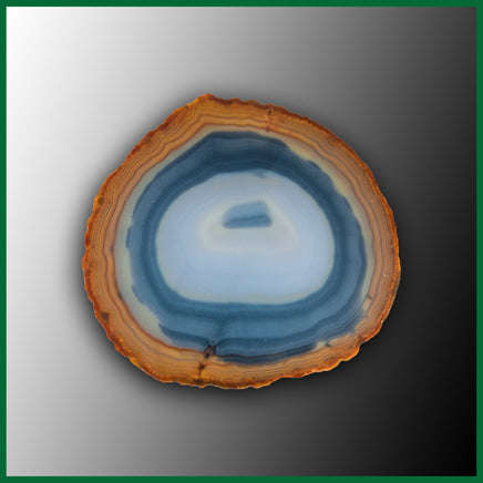 This is a polished specimen featuring shades of blue and yellow-orange banded agate.