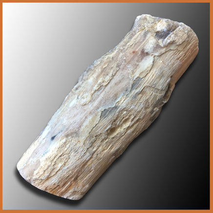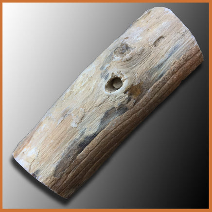 This specimen, from the collecting area in central-western Wyoming, features light brown and dark brown wood. This limb cast features excellent preservation of the outside wood with boring hole from ancient insects or birds.