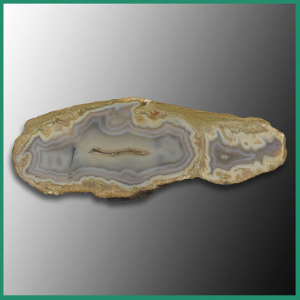 This specimen features lavender, blue, and gray banded agate around a quartz center.