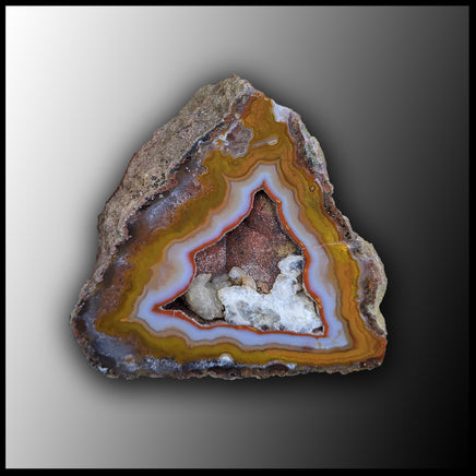 Moroccan agates come in a wide variety of colors and patterns, and can be found in locations all across Morocco. It is known for its brilliant colors and intriguing patterns, it makes superb cabochons and takes an exceptional polish. The great variety makes it an excellent addition to any collection. It is said to be a protective stone, often worn by travelers, and is also said to help boost self-confidence.