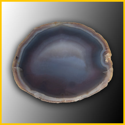 This is a polished specimen featuring foggy blue and red coloring with white bands.