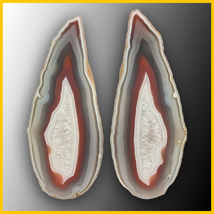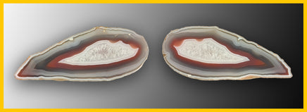 From the border of Eswatini and Mozambique, this Swazi Agate polished specimen pair features a quartz center surrounded by tight white banding with parallax, pink, blue, and gray agate.
