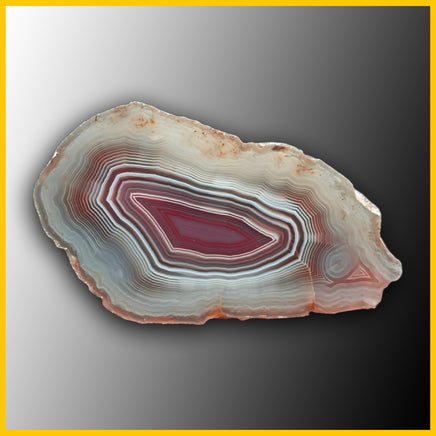 This is a polished specimen featuring grey, magenta, and white agate with very intense parallax throughout.