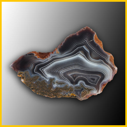 This is a polished specimen featuring contrasting black and white banding with some parallax.