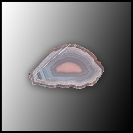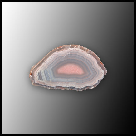 This Pink Botswana Agate polished specimen features gray agate tinted with pastel blue and pink, with concentric and water-level banding.