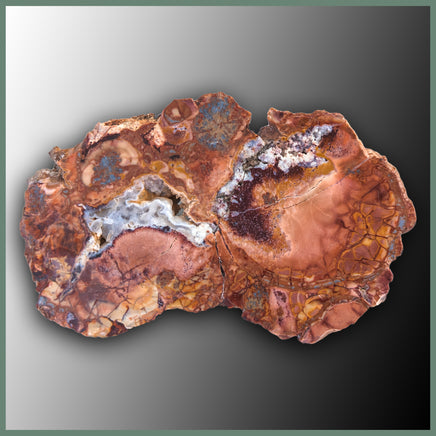 Cold Mountain Thundereggs are from the Sierra Mountains in Mexico. The thundereggs can contain water banding and feature red, mauve, or black “webbing.” While technically a rhyolite due to its thunderegg nature, Cold Mountain Thundereggs are highly silicate and feature large amounts of brecciation that has also been filled with silica, so this material takes an exceptional polish, making it ideal for both cabochons and specimens.