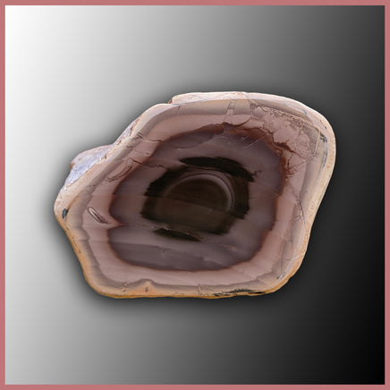 A polished specimen featuring mauve/pink and cream jasper in a smooth outer rock with slight egg patterning