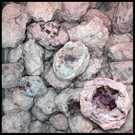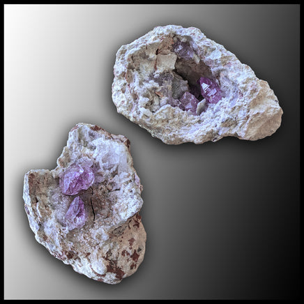 Amethyst Geodes from Sonora, Mexico. These geodes are partially hollow rather than the "traditional" completely hollow geodes typically thought of. Inside are smaller pockets with individual crystals inside (sometimes double-terminated!) Because of this, we suggest to only crack them open rather than use a saw, otherwise you may saw through a crystal.