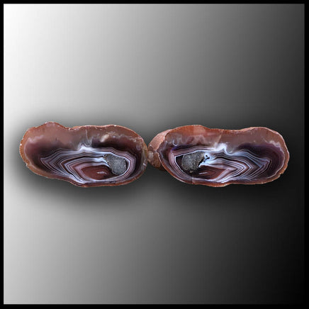 This specimen Pair features white, mauve, and brown banded agate with quartz.