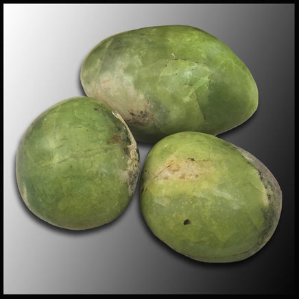 Green Opal pebbles normally display mostly green coloring with some white and brown coloring. The pebbles are fully polished and are approximately 1 1/2" to 3" in size.