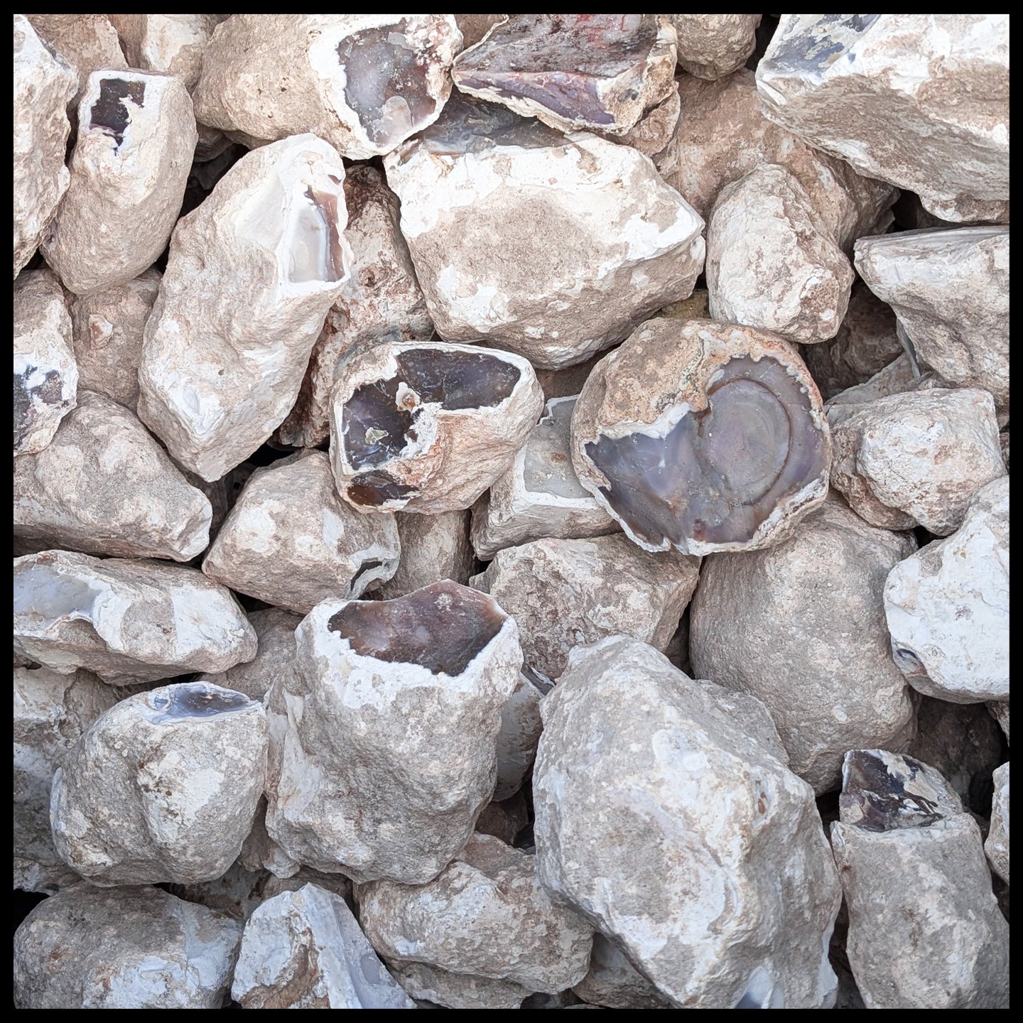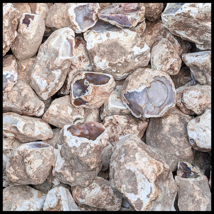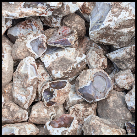 This jasper is a newer find out of Sonora, Mexico. It has a chalky tan to white outer matrix, filled with smooth jasper in muted shades of lavender, with occasional other hues of brown, red, or white.