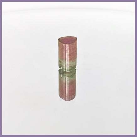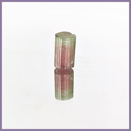 The Paprok mine in Afghanistan is in the mountains of a mineralogically rich pegmatite field. Situated northeast of Jalalabad in the Nuristan Province, this area is possibly the largest tourmaline deposit in Afghanistan, and frequently produces bicolor or 'watermelon' tourmalines. This Watermelon Tourmaline crystal has a light pink center surrounded by a pale green outer ring, fading into a brighter green cap on one end. It has beautiful vertical striations and double basal termination.