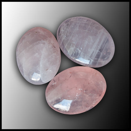 Rose quartz pebble in translucent pale pink quartz. Pebbles are polished and are approximately 1.5" - 3" long.