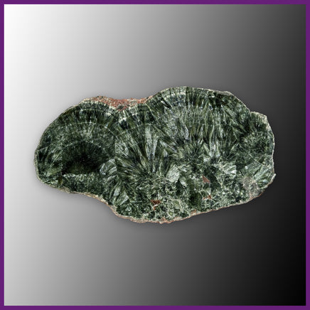 From Russia, Seraphinite is named for its feathery appearance - drawing from the biblical seraphim angels. It has metallic shades of forest green with silvery chatoyancy that appear in banded sprays. One side is polished with a thin layer of resin.