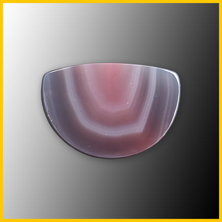 Swazi Agate comes from a region on the border of Eswatini and Mozambique. This polished cabochon shows muted grays and muted rose pink with gentle banding.