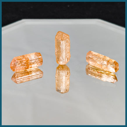 Set of 3 Golden Imperial Topaz crystals in translucent golden yellow and orange.